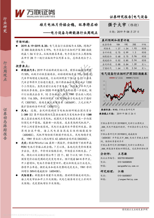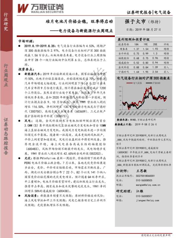 【万联证券】【20190827】电力设备与新能源行业周观点:硅片电池片价格企稳,旺季将启动-14页