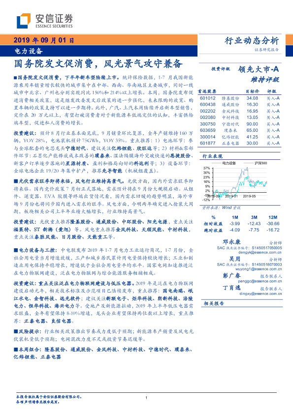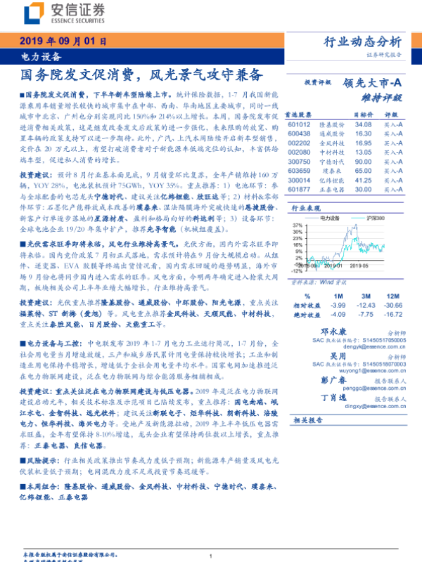 【安信证券】【20190901】电力设备行业动态分析:国务院发文促消费,风光景气攻守兼备-18页