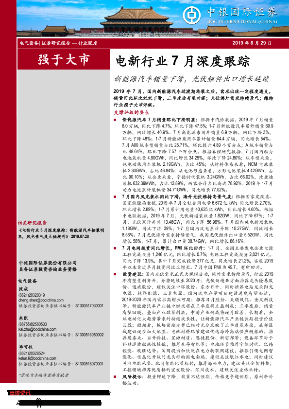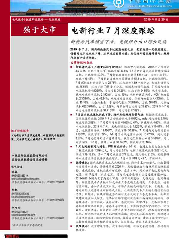 【中银证券】【20190829】电新行业7月深度跟踪:新能源汽车销量下滑,光伏组件出口增长延续-22页