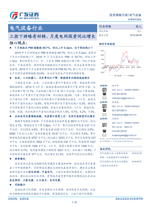 【广发证券】【20190828】电气设备行业:工控下游略有好转,月度电网投资同比增长-21页