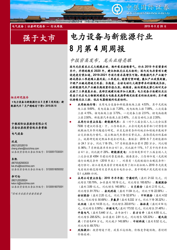 【中银证券】【20190826】电力设备与新能源行业8月第4周周报:中报密集发布,龙头业绩亮眼-20页
