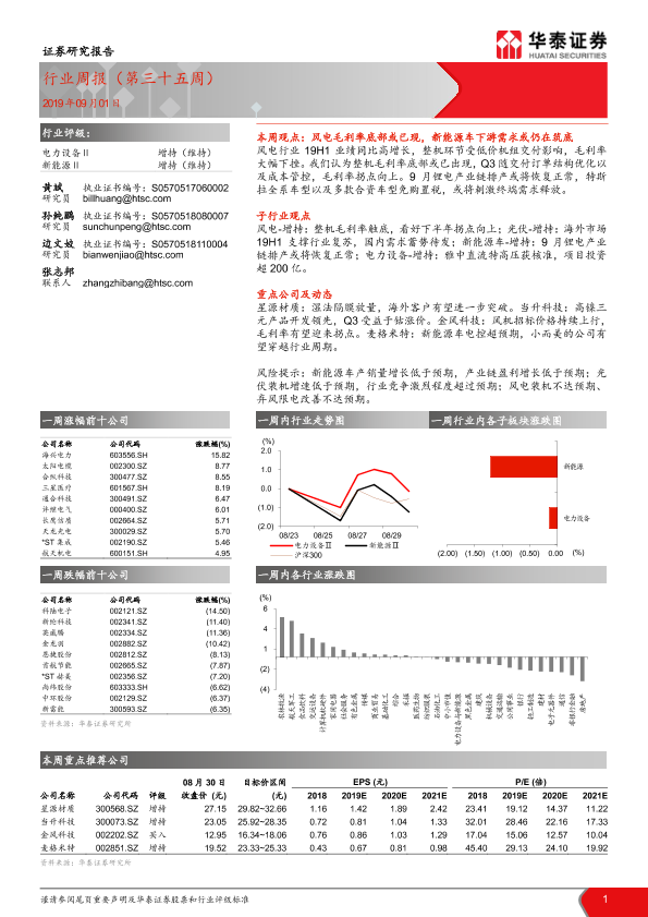 【华泰证券】【20190901】电力设备行业周报(第三十五周)-16页