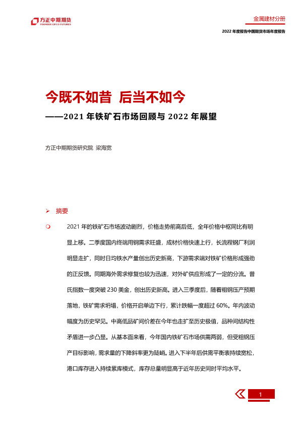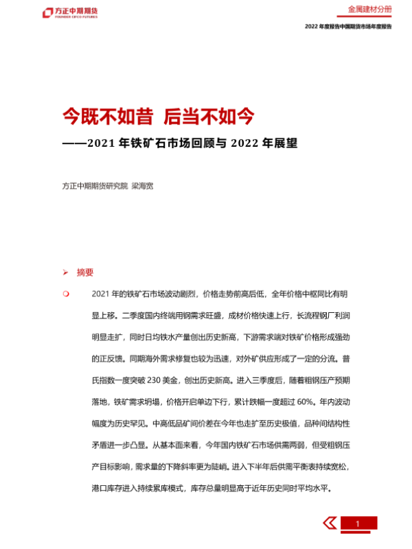 【方正中期期货】【20220121】2021年铁矿石市场回顾与2022年展望:今既不如昔,后当不如今-53页