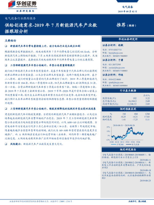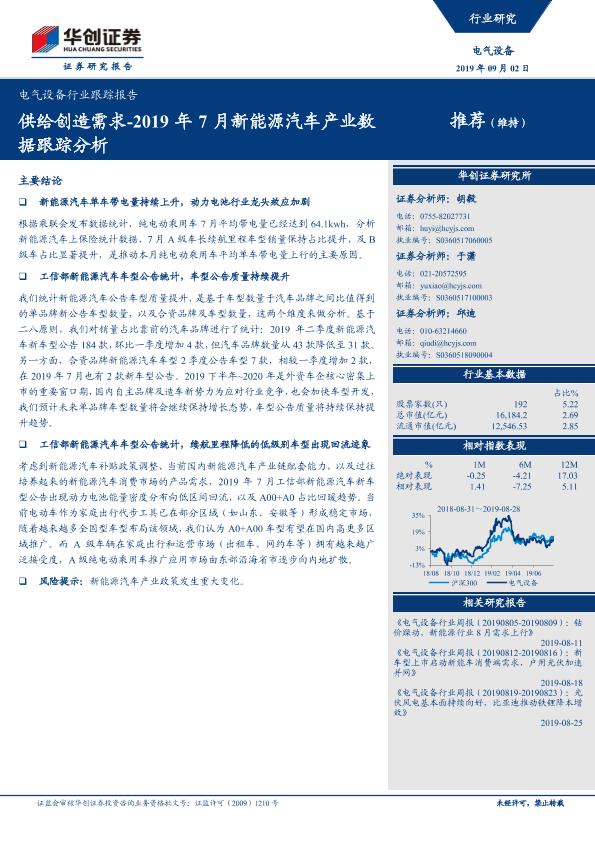 【华创证券】【20190902】2019年7月新能源汽车产业数据跟踪分析-供给创造需求-15页