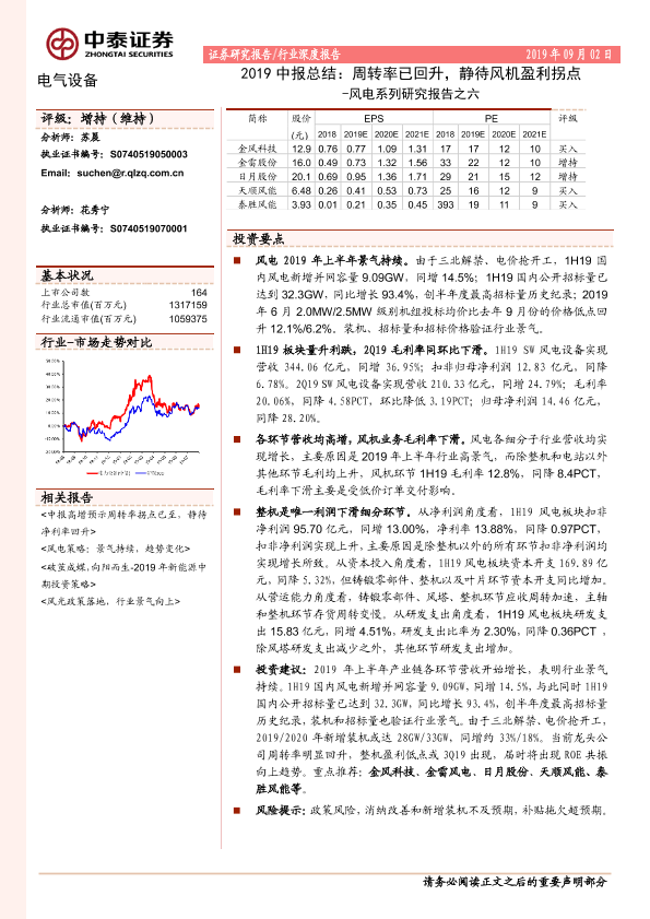 【中泰证券】【20190902】2019中报总结:周转率已回升,静待风机盈利拐点-30页