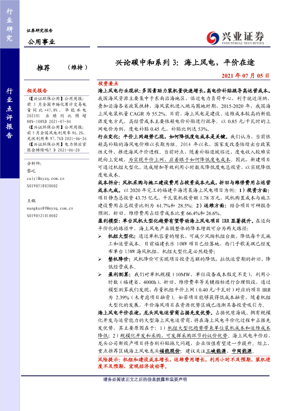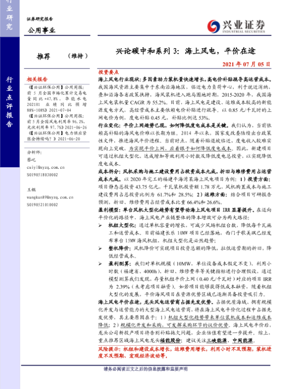 【兴业证券】【20210705】兴论碳中和系列3:海上风电,平价在途-15页