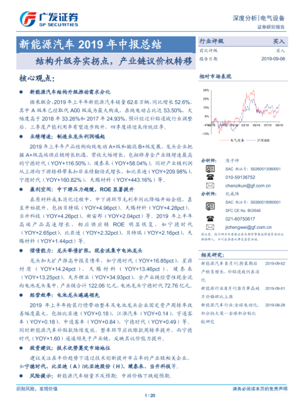 【广发证券】【20190906】新能源汽车2019年中报总结:结构升级夯实拐点,产业链议价权转移-20页
