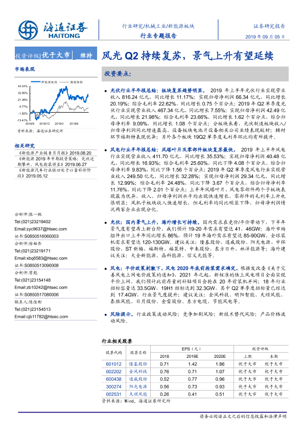 【海通证券】【20190905】新能源板块行业专题报告:风光Q2持续复苏,景气上升有望延续-24页