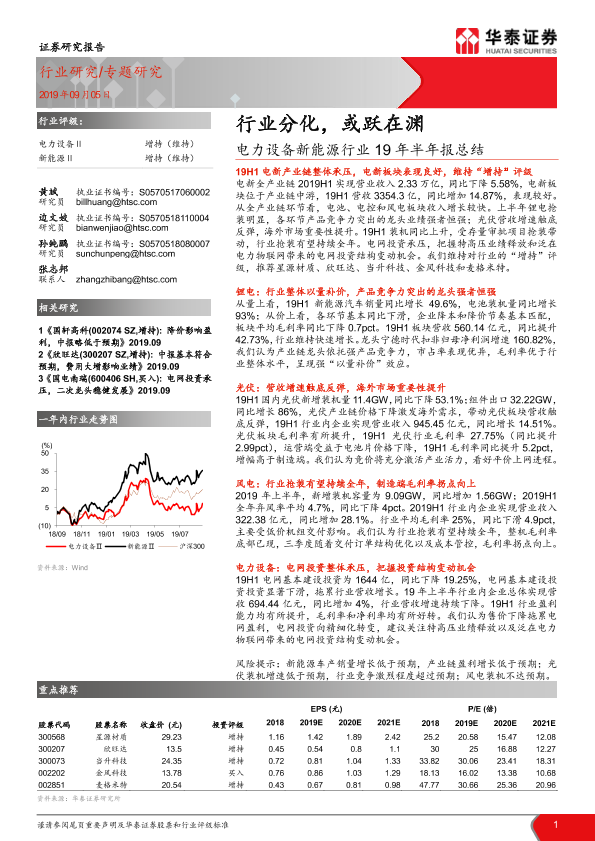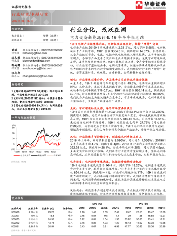 【华泰证券】【20190905】电力设备新能源行业19年半年报总结:行业分化,或跃在渊-30页