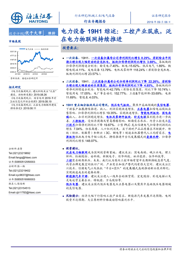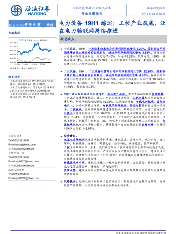 【海通证券】【20190906】电力设备19H1综述:工控产业筑底,泛在电力物联网持续推进-18页