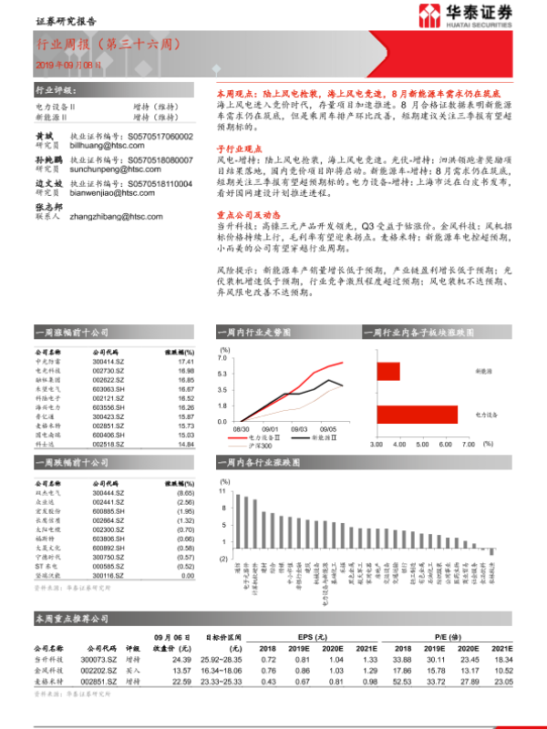 【华泰证券】【20190908】电力设备 新能源行业周报(第三十六周)-14页