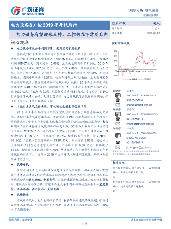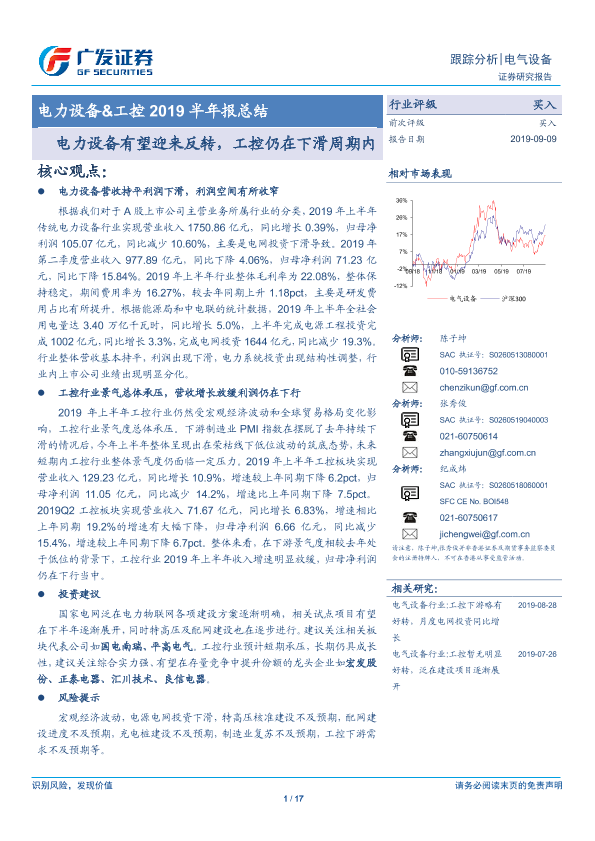 【广发证券】【20190909】电力设备&工控2019半年报总结:电力设备有望迎来反转,工控仍在下滑周期内-17页