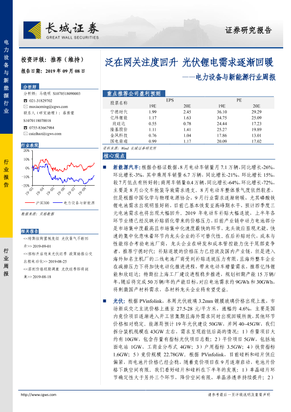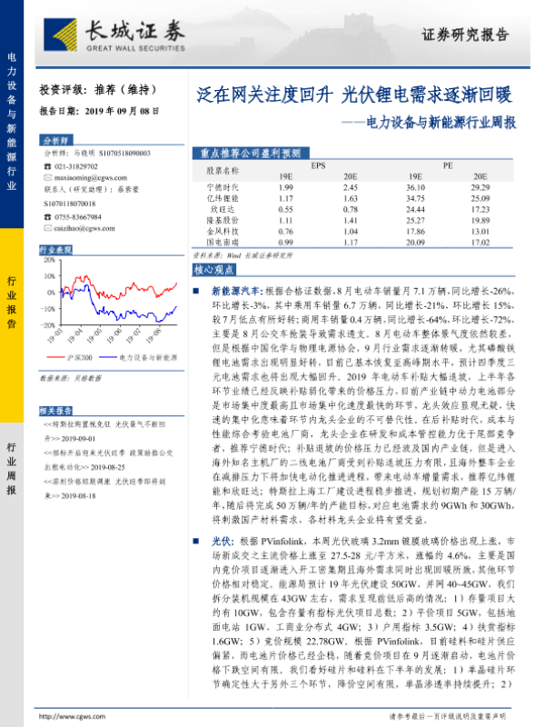 【长城证券】【20190908】电力设备与新能源行业周报:泛在网关注度回升 光伏锂电需求逐渐回暖-15页