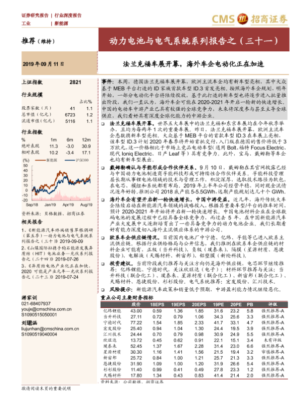 【海通证券】【20190911】动力电池与电气系统系列报告之(三十一):法兰克福车展开幕,海外车企电动化正在加速-13页
