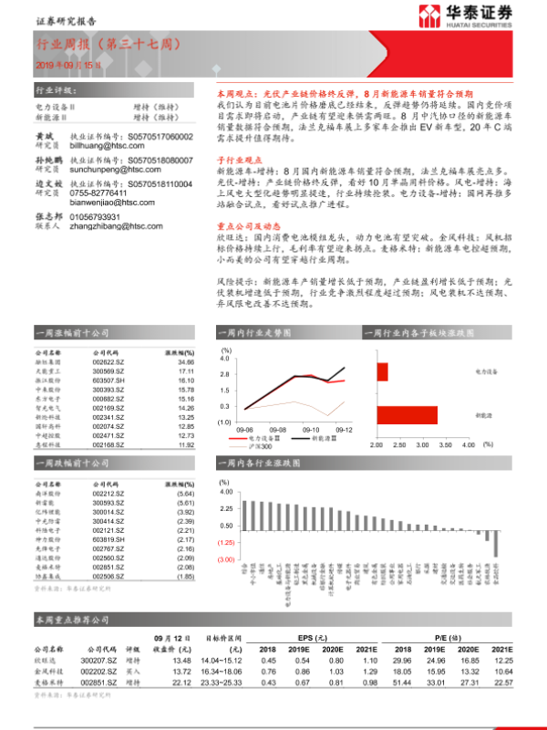 【华泰证券】【20190915】20190915-华泰证券-电力设备 新能源行业周报(第三十七周)-13页