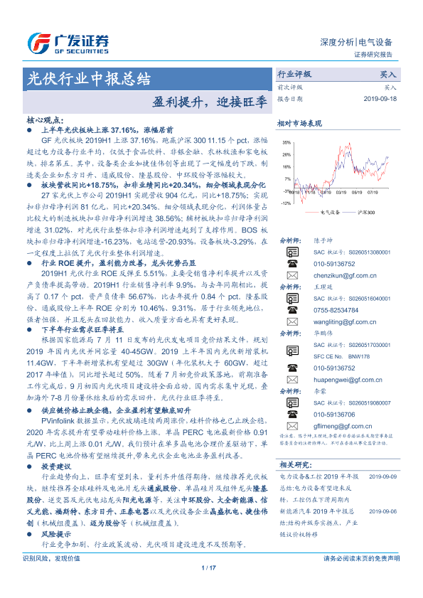 【广发证券】【20190918】光伏行业中报总结:盈利提升,迎接旺季-17页