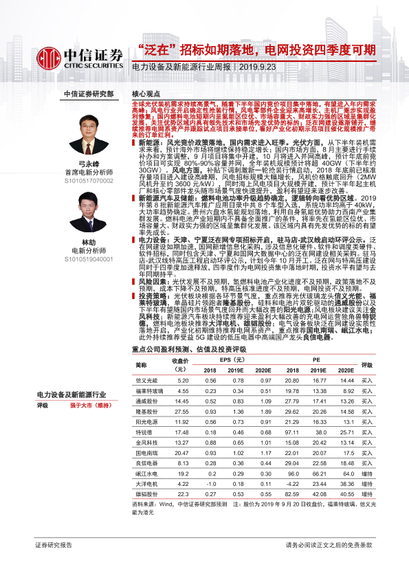 【中信证券】【20190923】电力设备及新能源行业周报:“泛在”招标如期落地,电网投资四季度可期-11页