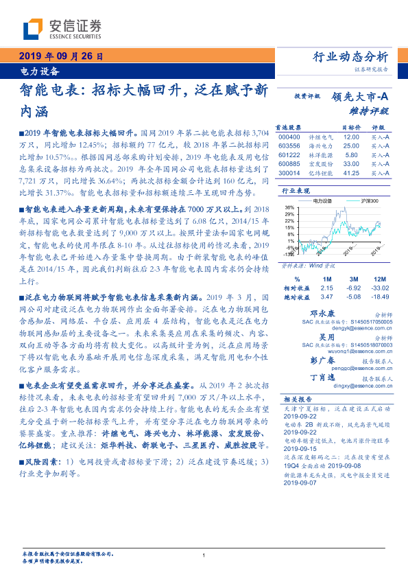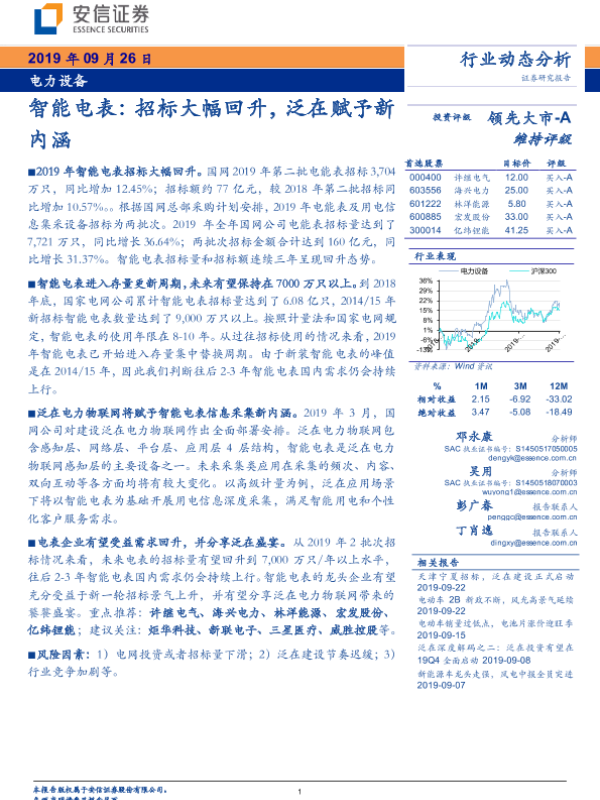 【安信证券】【20190926】智能电表:招标大幅回升,泛在赋予新内涵-8页