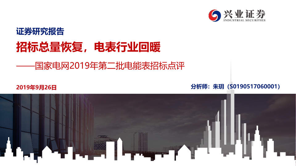 【兴业证券】【20190926】国家电网2019年第二批电能表招标点评:招标总量恢复,电表行业回暖-16页