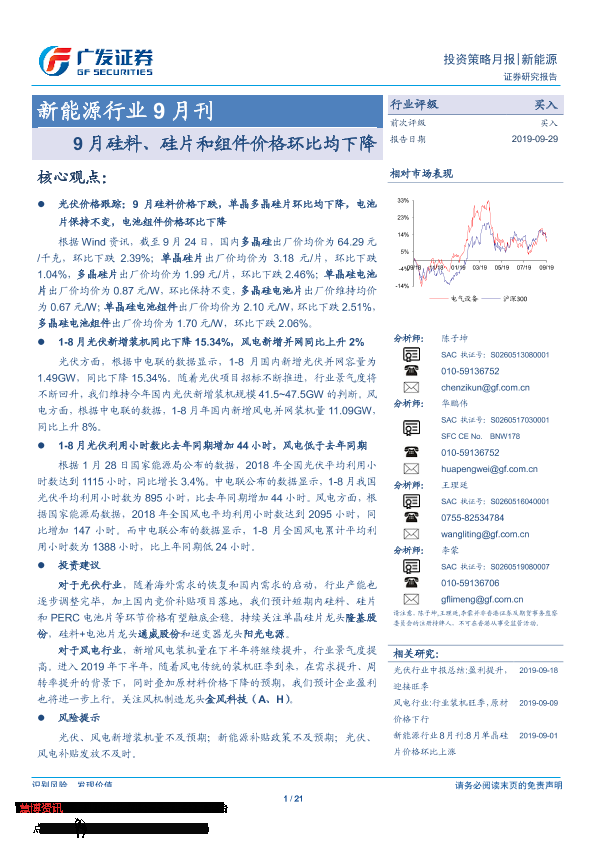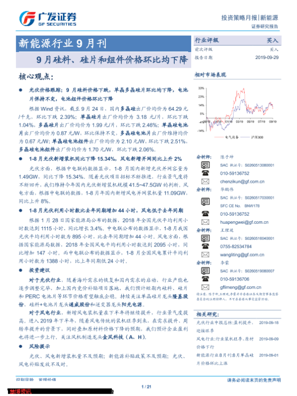 【广发证券】【20190929】20190929-广发证券-新能源行业9月刊:9月硅料、硅片和组件价格环比均下降-21页
