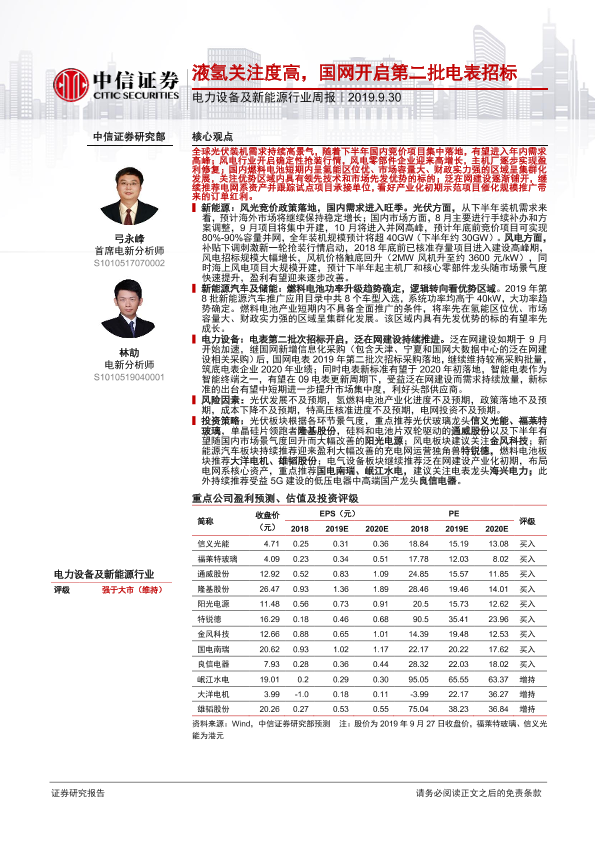 【中信证券】【20190930】电力设备及新能源行业周报:液氢关注度高,国网开启第二批电表招标-11页