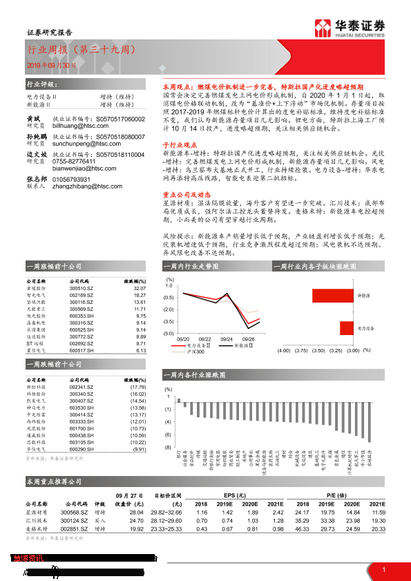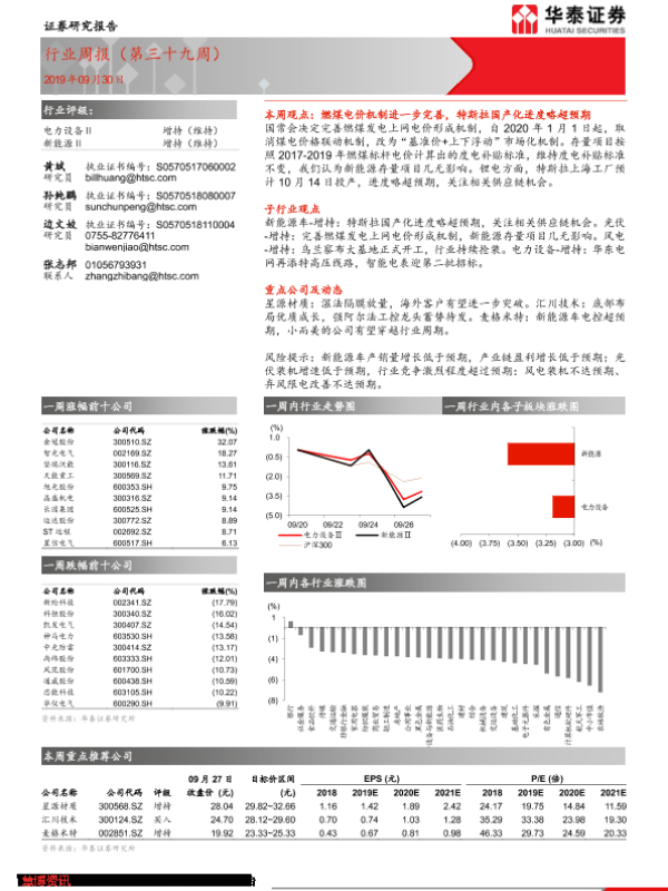 【华泰证券】【20190930】电力设备行业周报(第三十九周)-15页