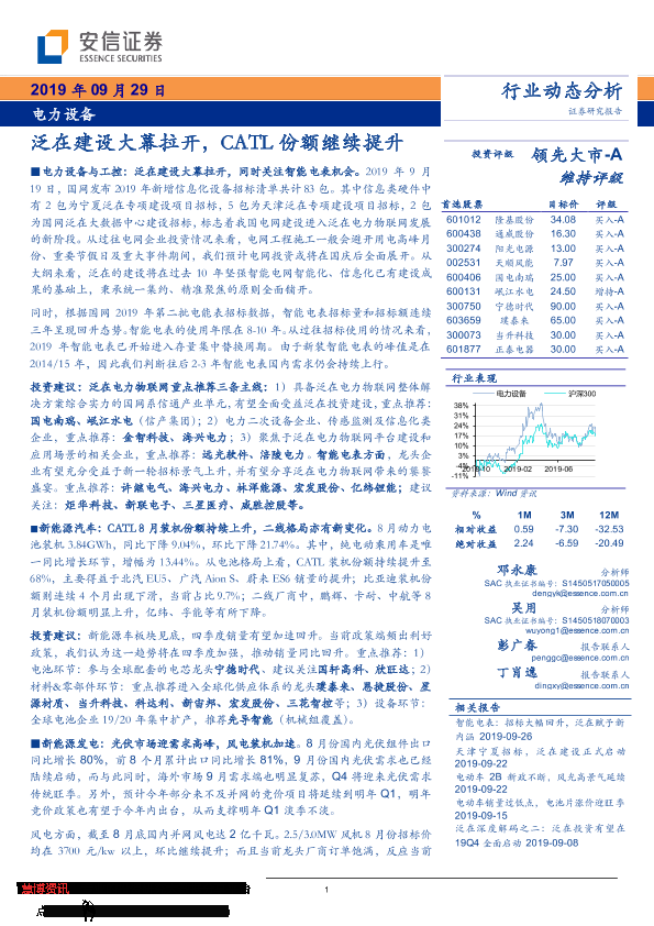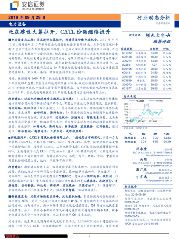 【安信证券】【20190929】电力设备行业动态分析:泛在建设大幕拉开,CATL份额继续提升-19页