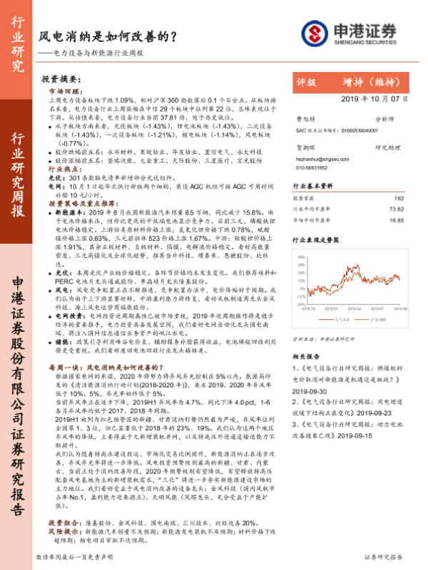【申港证券】【20191007】电力设备与新能源行业周报:风电消纳是如何改善的?-29页