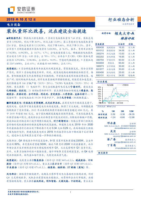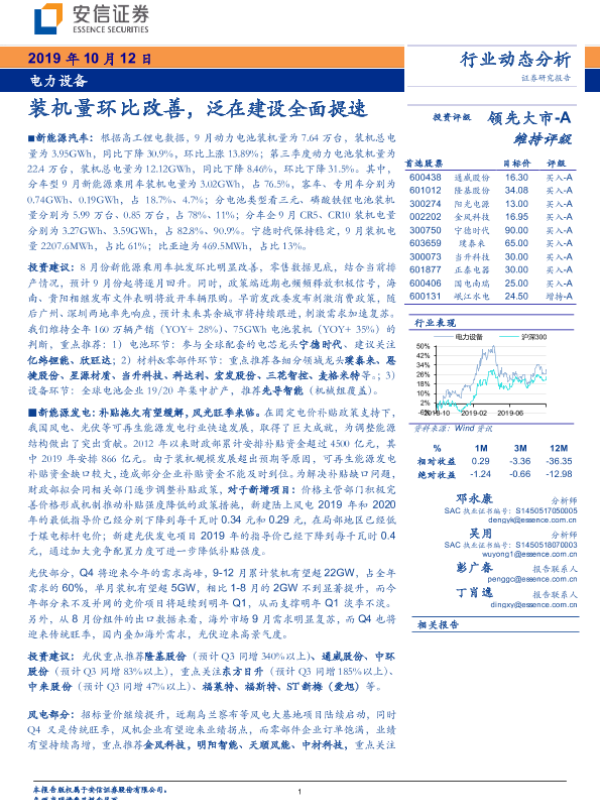 【安信证券】【20191012】电力设备行业动态分析:装机量环比改善,泛在建设全面提速-21页