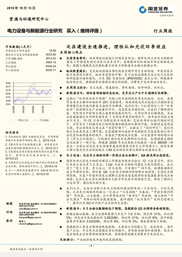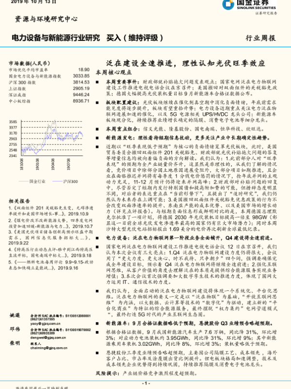 【国金证券】【20191013】电力设备与新能源行业研究周报:泛在建设全速推进,理性认知光伏旺季效应-4页