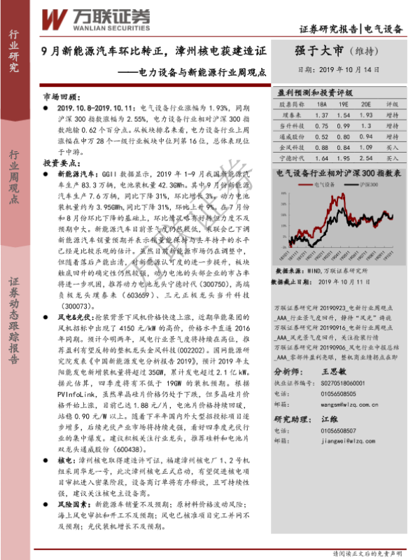 【万联证券】【20191014】电力设备与新能源行业周观点:9月新能源汽车环比转正,漳州核电获建造证-13页