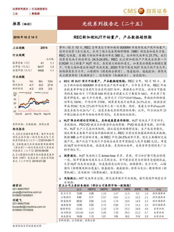 【海通证券】【20191014】光伏系列报告之(二十五):REC新加坡HJT开始量产,产品数据超预期-13页