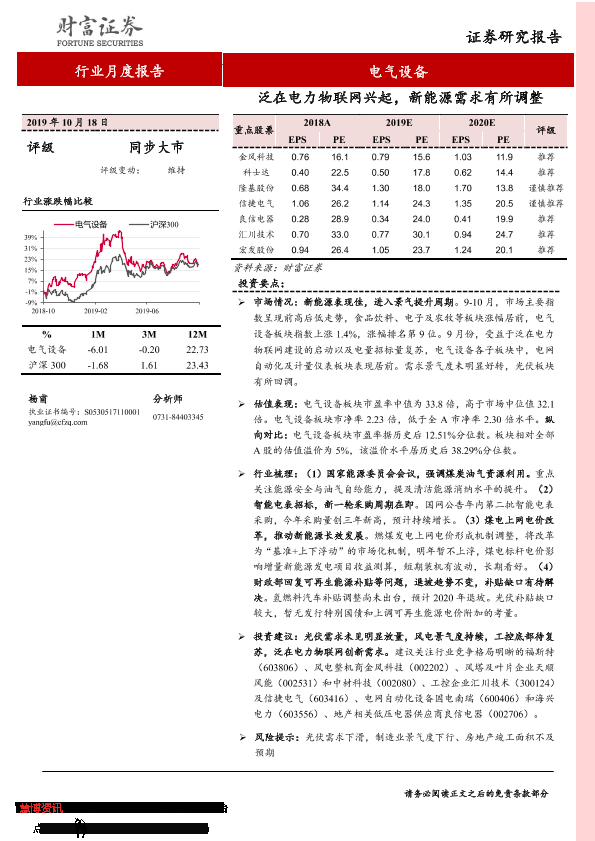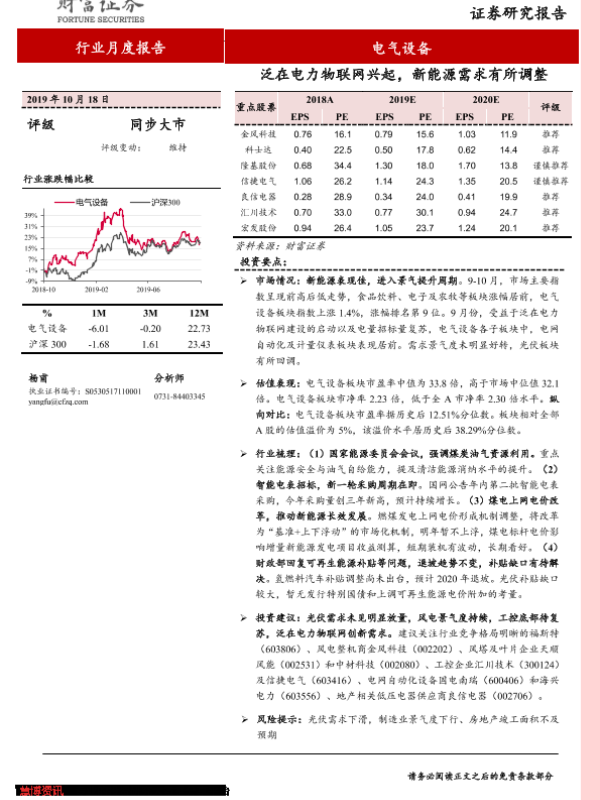 【财信证券】【20191018】电气设备行业月度报告:泛在电力物联网兴起,新能源需求有所调整-22页