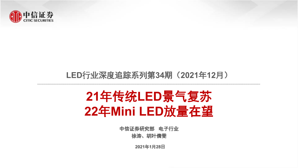 【中信证券】【20220128】LED行业深度追踪系列第34期(2021年12月):21年传统LED景气复苏,22年Mini LED放量在望-22页