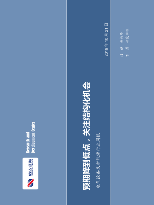 【信达证券】【20191021】电气设备及新能源行业周报:预期降到低点,关注结构化机会-17页