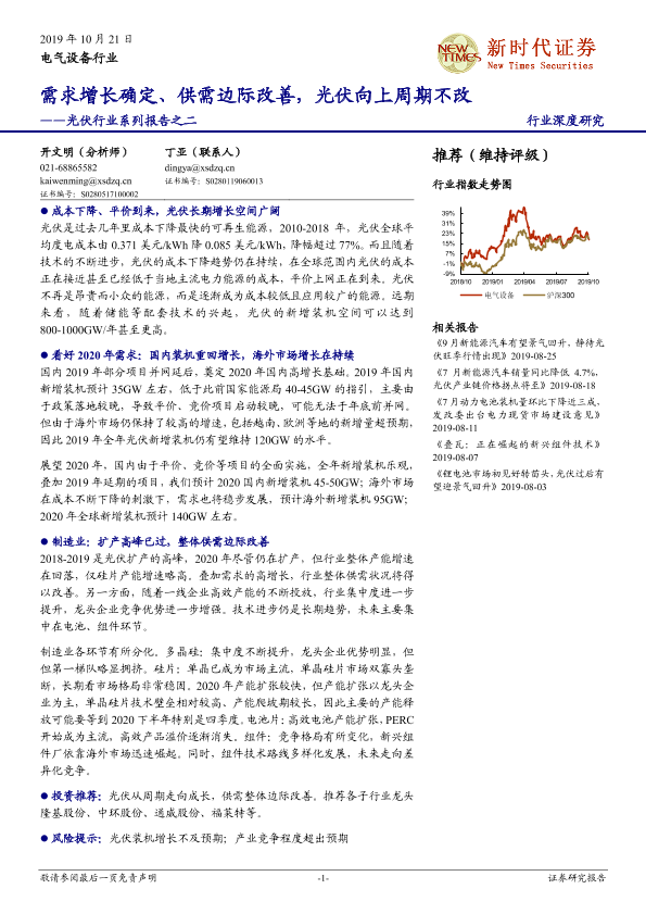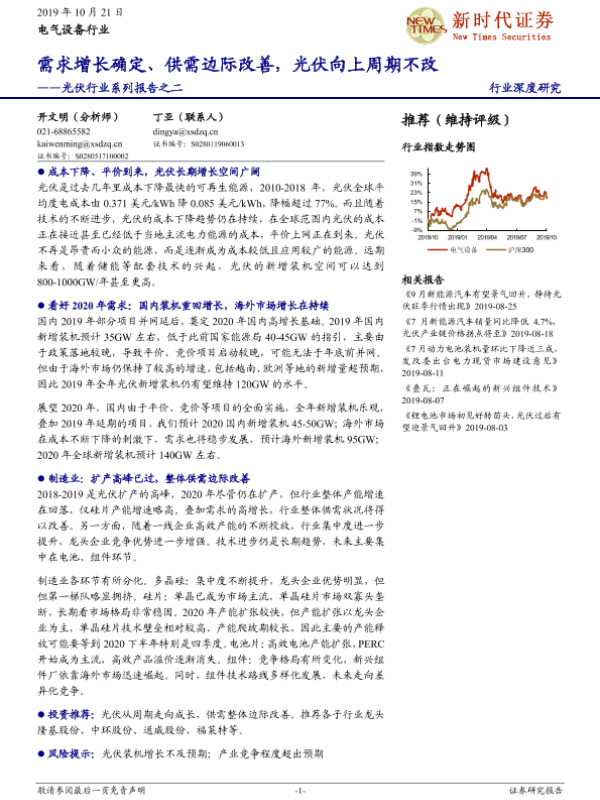 【新时代证券】【20191021】光伏行业系列报告之二:需求增长确定、供需边际改善,光伏向上周期不改-26页