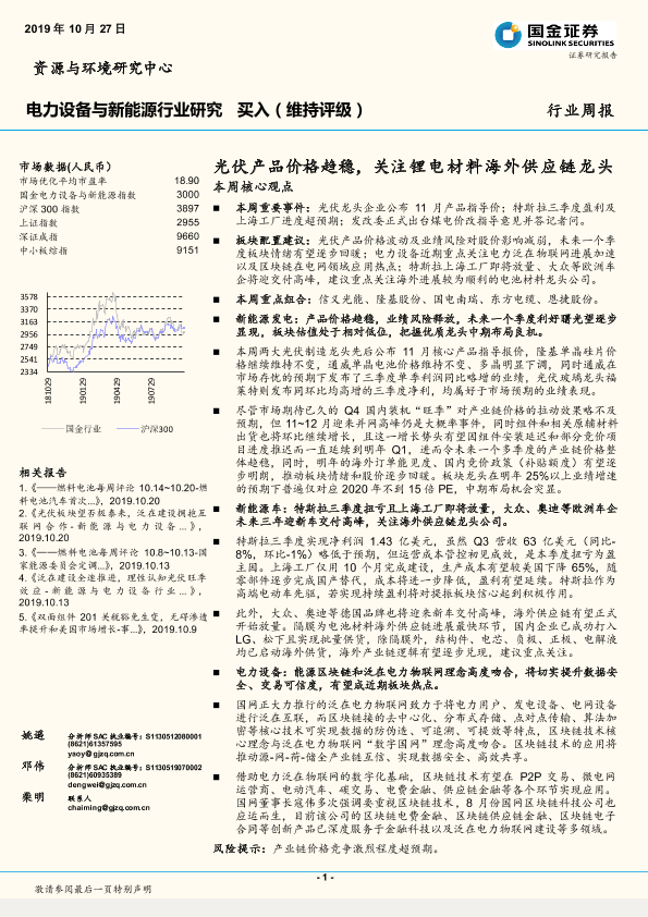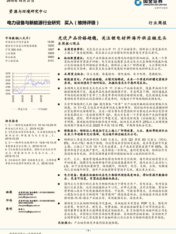 【国金证券】【20191027】电力设备与新能源行业研究周报:光伏产品价格趋稳,关注锂电材料海外供应链龙头-4页