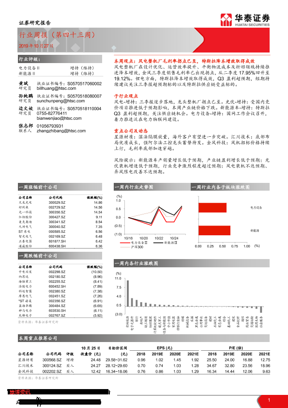 【华泰证券】【20191027】20191027-华泰证券-电力设备行业周报(第四十三周)-17页