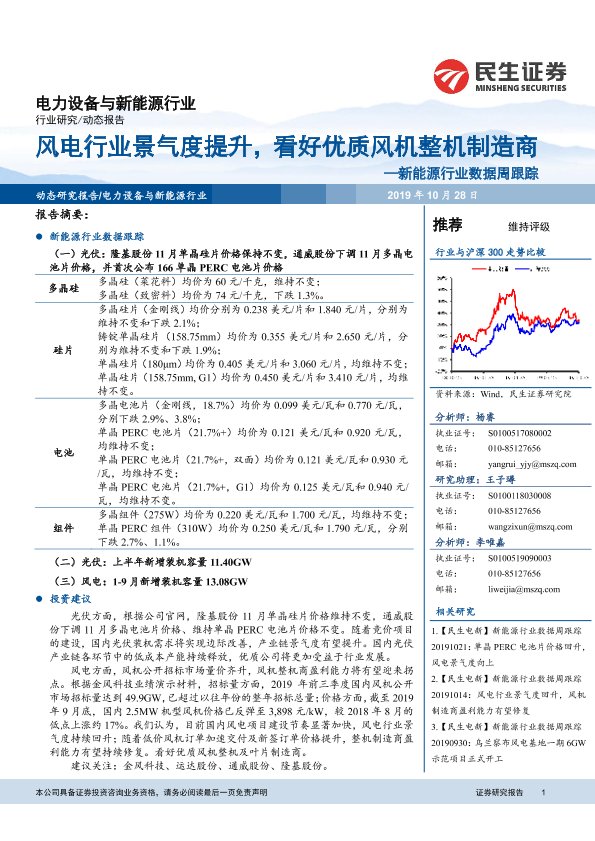 【民生证券】【20191028】20191028-民生证券-新能源行业数据周跟踪:风电行业景气度提升,看好优质风机整机制造商-11页