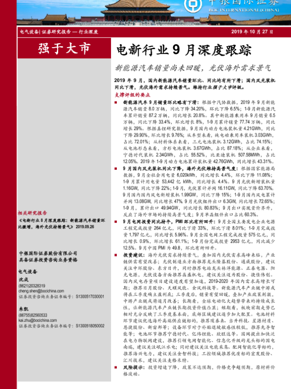 【中银证券】【20191027】电新行业9月深度跟踪:新能源汽车销量尚未回暖,光伏海外需求景气-21页