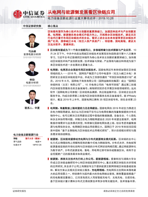 【中信证券】【20191028】从电网与能源侧发展看区块链应用-4页