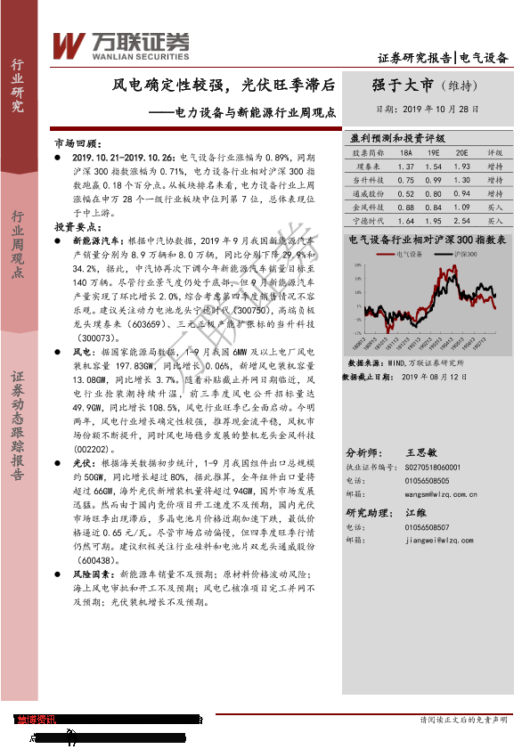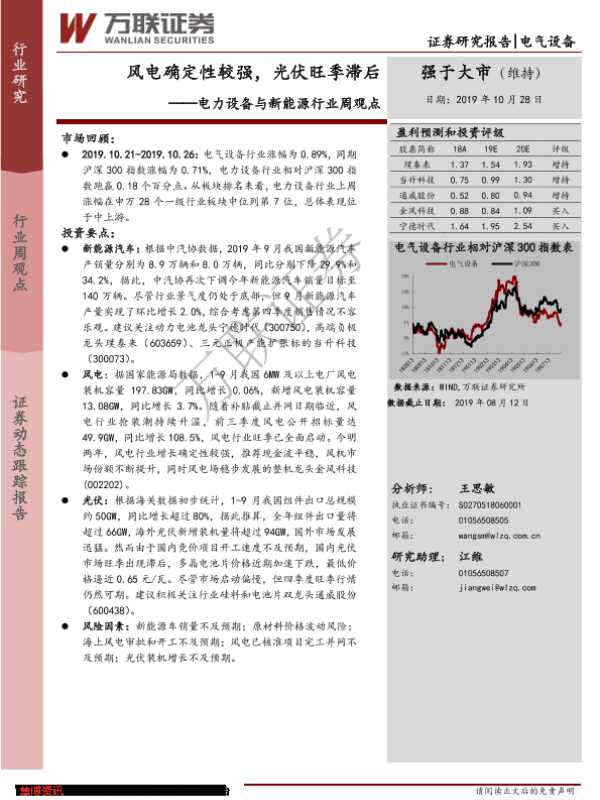 【万联证券】【20191028】电力设备与新能源行业周观点:风电确定性较强,光伏旺季滞后-12页