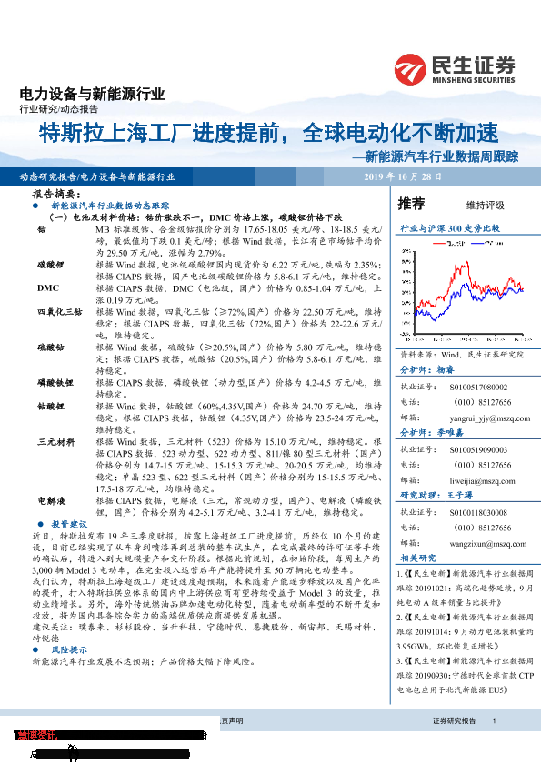 【民生证券】【20191028】新能源汽车行业数据周跟踪:特斯拉上海工厂进度提前,全球电动化不断加速-12页