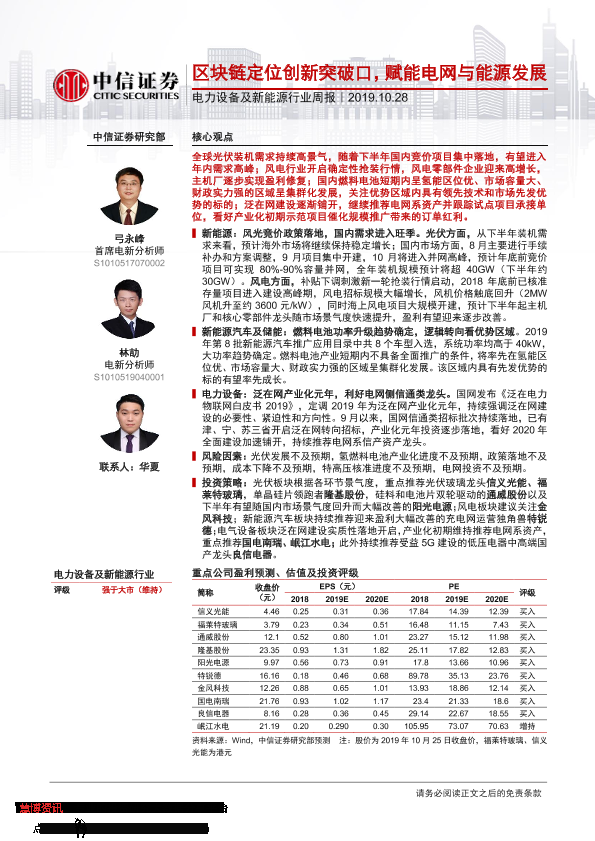 【中信证券】【20191028】电力设备及新能源行业周报:区块链定位创新突破口,赋能电网与能源发展-16页