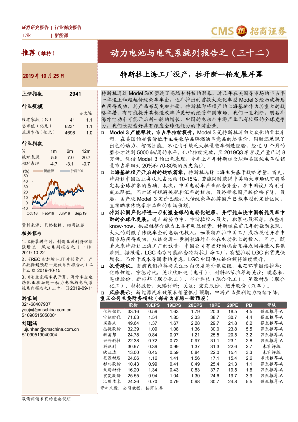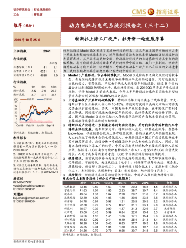【海通证券】【20191025】动力电池与电气系统列报告之(三十二):特斯拉上海工厂投产,拉开新一轮发展序幕-25页