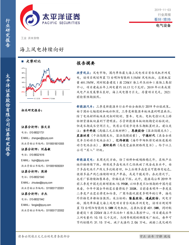【太平洋证券】【20191103】20191103-太平洋-电气设备行业周报:海上风电持续向好-18页