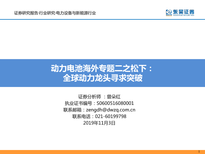 【东吴证券】【20191103】动力电池海外专题二之松下:全球动力龙头寻求突破-33页