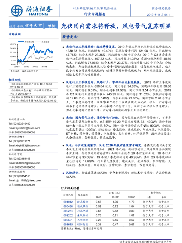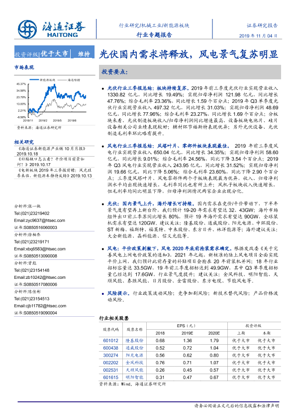 【海通证券】【20191104】20191104-海通证券-新能源板块行业专题报告:光伏国内需求将释放,风电景气复苏明显-24页