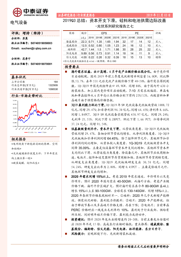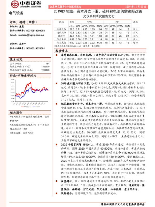 【中泰证券】【20191103】2019Q3总结 资本开支下滑,硅料和电池供需边际改善-24页