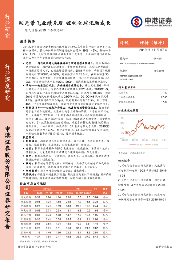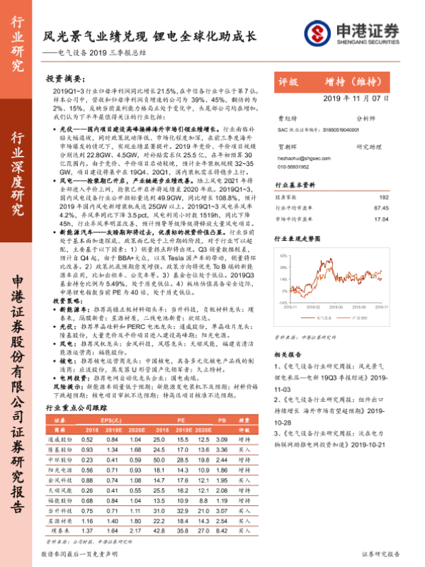 【申港证券】【20191107】电气设备2019三季报总结:风光景气业绩兑现 锂电全球化助成长-59页
